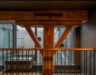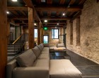 The facades of the three warehouse buildings in Miesnieku Street have been authenti- cally preserved, with glass walls added to the central building’s inner courtyard, giving it a contemporary look. The first floor of this building serves as the entrance lobby for the entire complex.